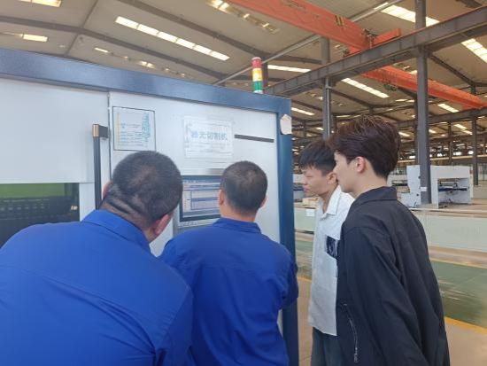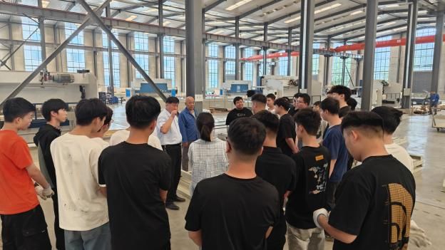 此次实训,同学们被有序分派至不同工作岗位,全方位接触电梯制造的基本环节。在专业技术人员的带领下,负责设备操作学习的同学率先对激光切割机和剪板机展开探索。激光切割机凭借高精准度,能够将金属板材切割成各种复杂形状;剪板机则以高效的裁切能力,完成大型板材的初步加工。从设备的启动调试、参数设置,到安全防护措施的落实,技术人员一一细致讲解并示范。同学们全神贯注,认真记录要点,在反复实操中逐渐掌握操作要领,从最初的小心翼翼到后来的熟练操作,每一步都见证着他们的成长。