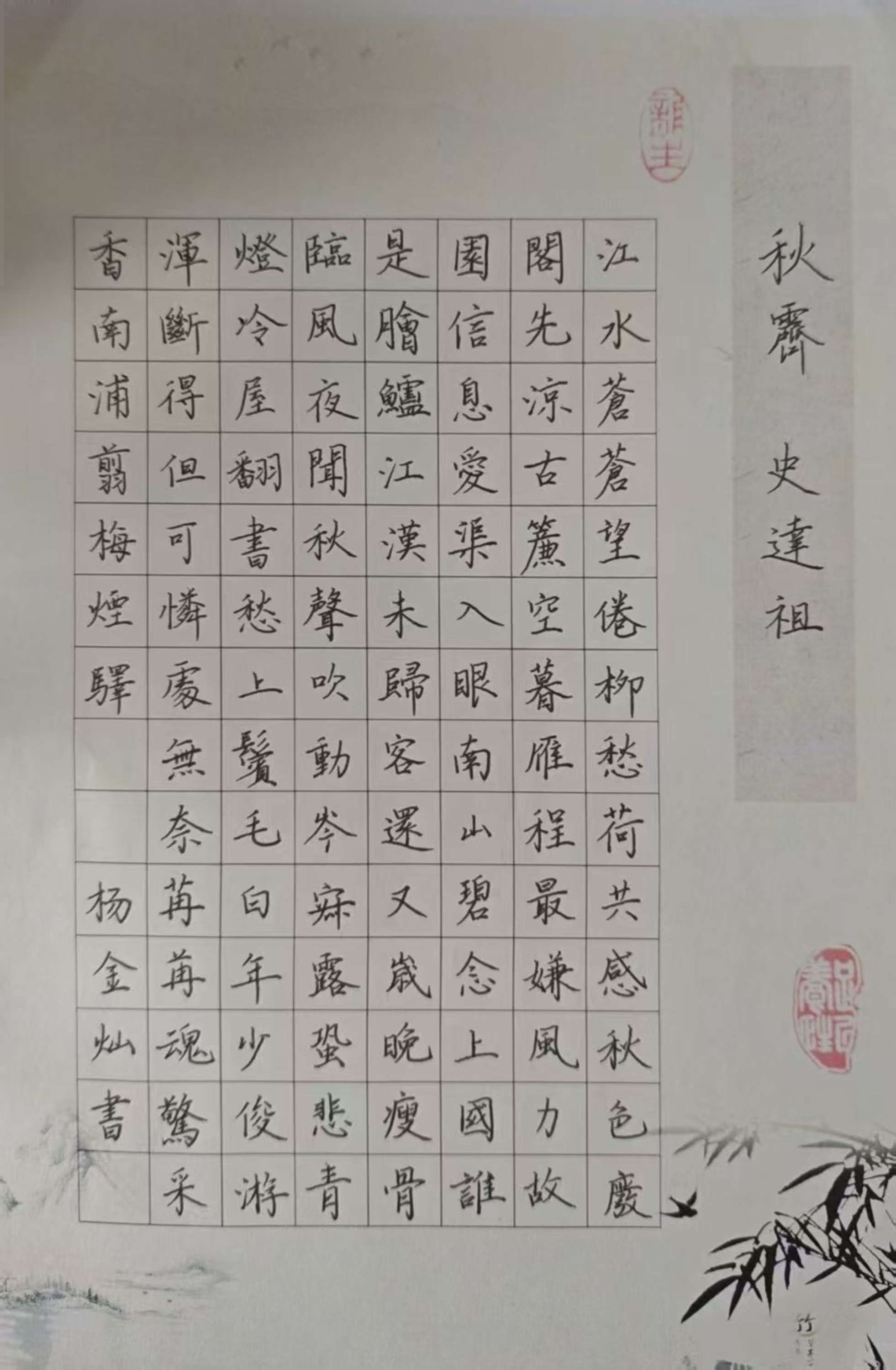 本作品入选第七届中华经典诵写讲大赛国赛决赛,并获得“笔墨中国”山西省硬笔大学生组三等奖。