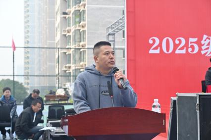 付剑代表全院师生向2025级新同学表示热烈的欢迎,向圆满完成军训任务的同学们表示衷心的祝贺,向为此次军训精心组织、辛勤工作的全体教官表示衷心的感谢。同时,对全体同学提出勉励并送上寄语。他希望同学们一是树立远大志向,强化责任意识;二是锤炼过硬本领,夯实立身之基;三是践行知行合一,主动担当作为;四是自强自律自爱,涵养优秀品格。希望同学们不负时代使命、不负青春韶华,在日积月累的钻研中夯实学识根基,在慎独自处的坚守中涵养自律品格,始终保持“如初春、如朝阳”的昂扬锐气,努力充实自我、完善自我、磨砺自我,成为肩负责任、身怀绝技、可堪大用的有为青年。