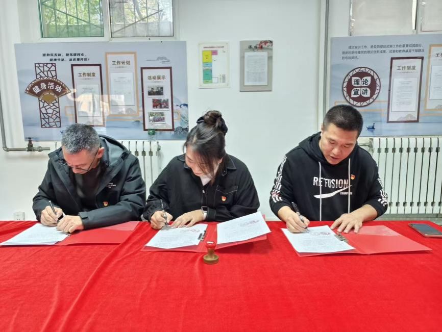 学院后勤保卫中心党支部、团学党支部与社区党委共同签订了《校地党组织区域化联建共建协议》。协议明确,双方将建立定期沟通机制,在组织建设互促、党员队伍共育、服务群众共推、文化活动共办等方面开展长期合作,推动校地资源高效整合,形成 “校社联动、共建共赢” 的良好局面。
