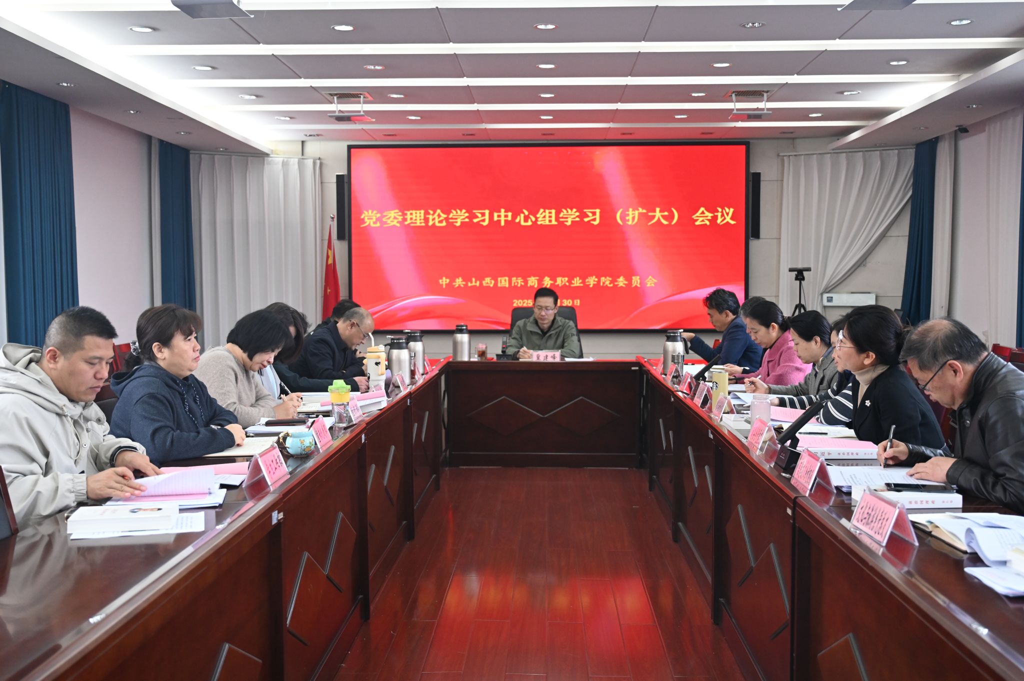 10月30日,我院在行知楼会议室召开党委理论学习中心组学习(扩大)会议,传达学习贯彻党的二十届四中全会精神,并就《习近平谈治国理政》第五卷的学习进行动员部署。院党委书记冀建峰主持并讲话。党委理论学习中...